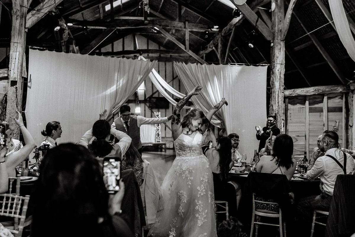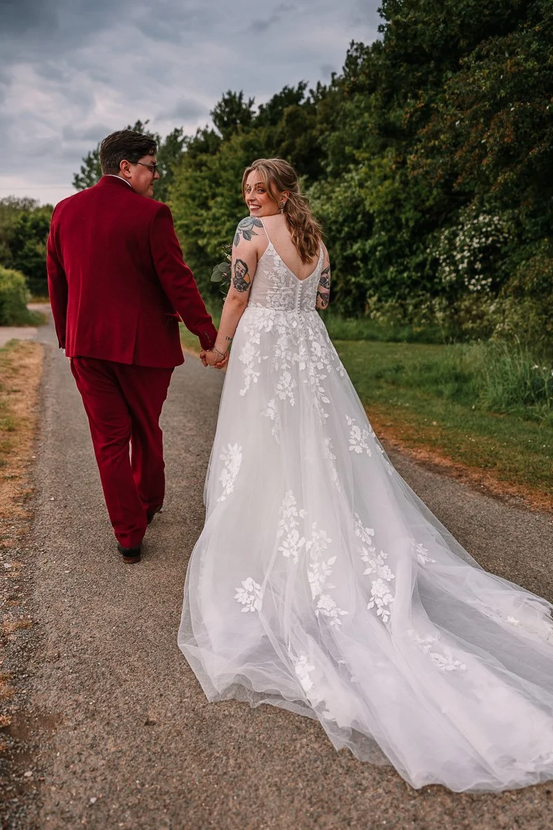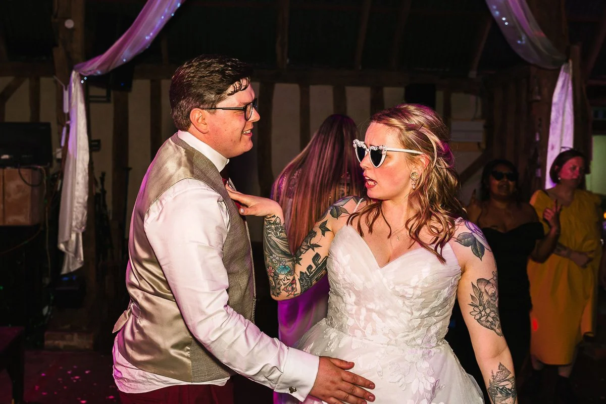 Alpheton Hall Barns is ideal if you want a wedding that doesn’t feel forced or overly traditional. The venue is flexible, relaxed, and genuinely welcoming of couples who want to do things their own way. Whether that’s Vans instead of heels, an emo playlist, nerdy DIY details, or skipping traditions that don’t feel like you.
