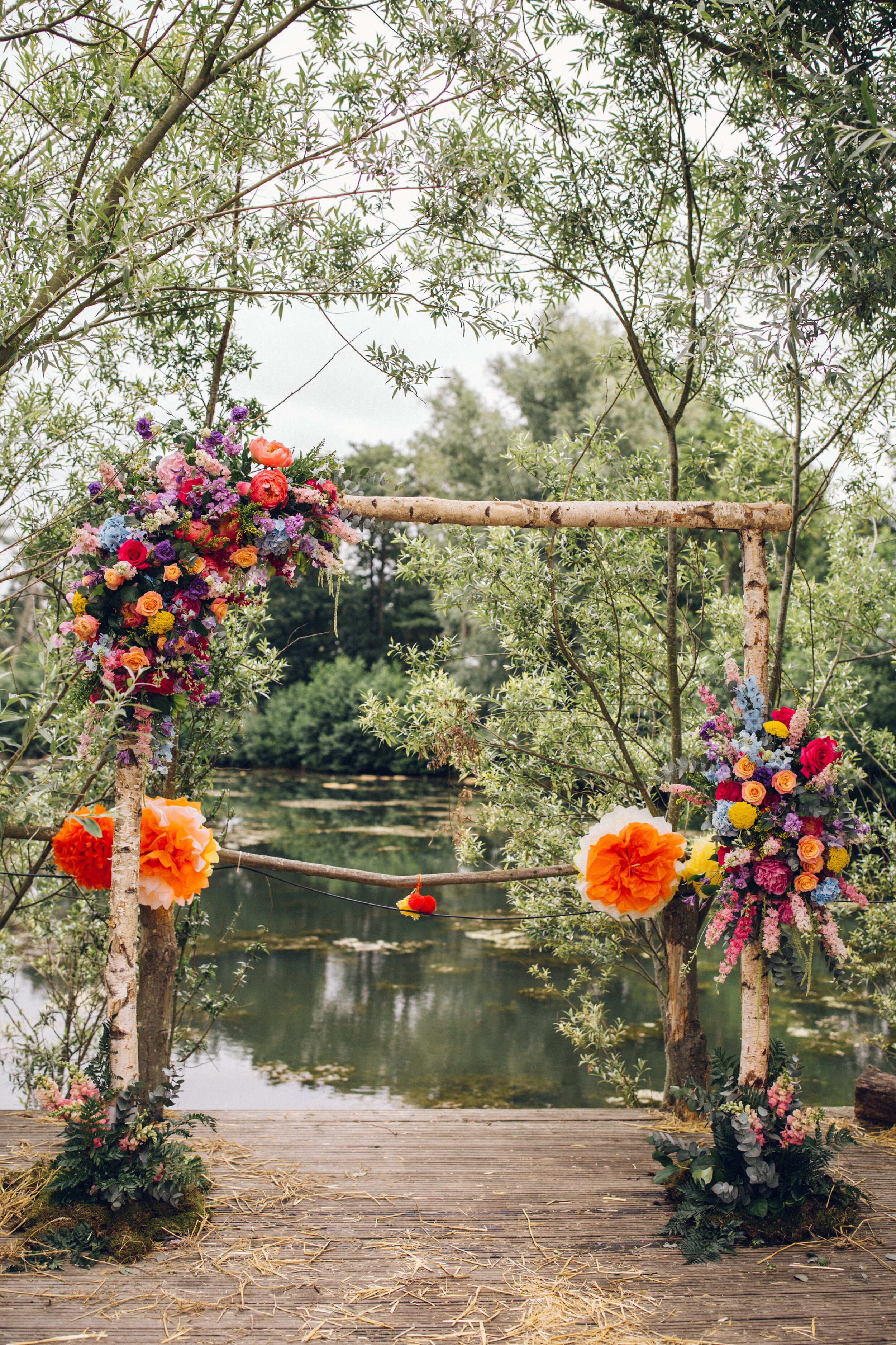 It’s a unique dry hire venue next to Chalkney Woods. The space has an epic tipi set up ready for your festival wedding complete with a sound system, dance floor, bar area, great toilet block, optional bell tent hire and a cabin in the woods with a hot tub to hire. The tipi is situated opposite a beautiful lake with a wooden pontoon perfect for your wedding ceremony and a walkway around the lake provides a beautiful location for your photos.