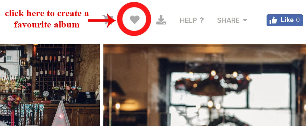 Log into your online gallery, click the heart button and create a favourites list called “Wedding Album” so I can view this when downloading your image selection. If your parents would like an album of their choosing that isn’t a duplicate of this then name that with the relevant name ie; “mums album”.